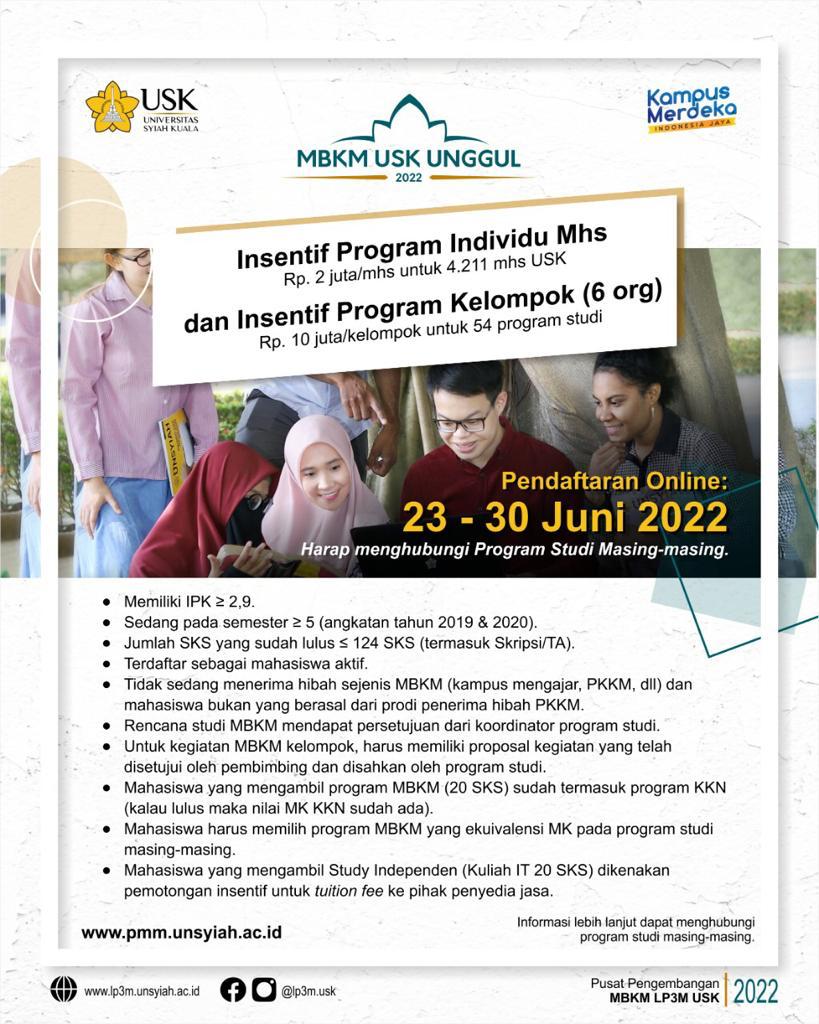 Pendaftaran Program MBKM USK Unggul 2022 pada tanggal 23-30 Juni 2022