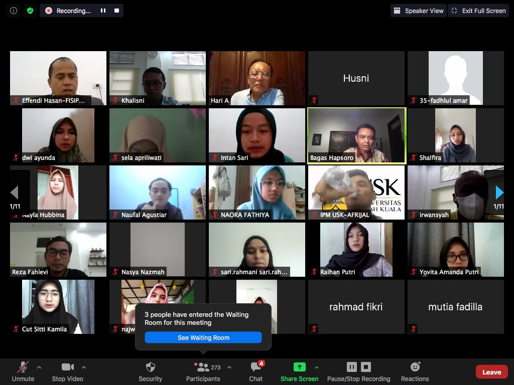 Kegiatan bedah buku secara daring tersebut juga dihadiri oleh Wakil Dekan I FISIP USK Effendi Hasan, Dubes RI untuk Swedia dan Latvia (2016-2020) Bagas Hapsoro, Sekretaris Direktorat Jenderal Kerjasama ASEAN Kemlu RI (2016-2018) Hari Ashariyadi, para diplomat senior, dan civitas akademika USK.