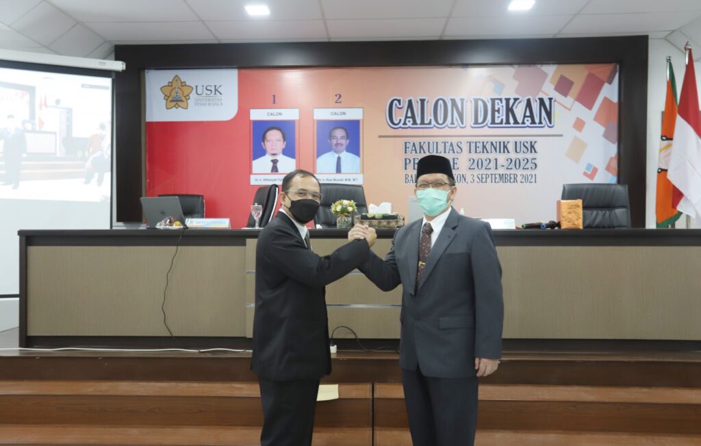 Dr. Ir. Alfiansyah Yulianur BC terpilih sebagai Dekan Fakultas Teknik Universitas Syiah Kuala periode 2021 – 2025. Keputusan tersebut berdasarkan hasil pemilihan Dekan FT yang berlangsung di Aula Balai Keurukon FT USK. (Banda Aceh, 3 September 2021).