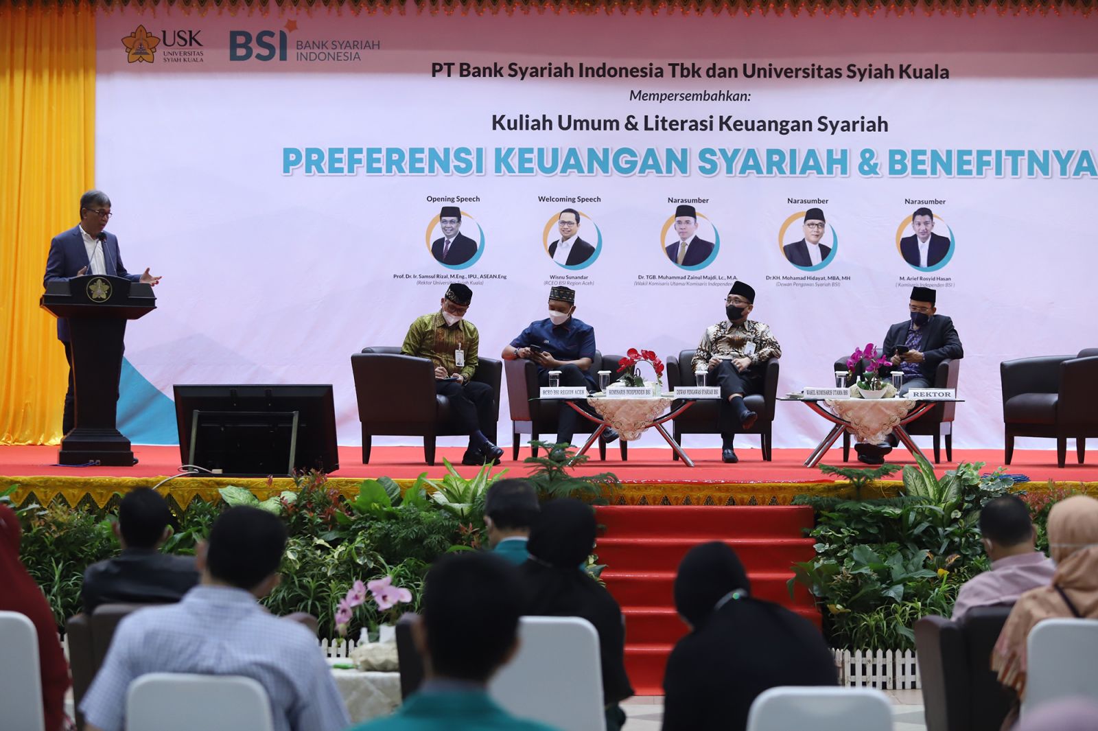 Bank Syariah Indonesia menggelar kuliah umum terkait literasi keuangan syariah di Universitas Syiah Kuala. Kuliah umum yang mengangkat tema Preferensi Keuangan Syariah dan Benefitnya tersebut, dibuka oleh Rektor USK Prof. Dr. Ir. Samsul Rizal, M.Eng. IPU., Asean.Eng di Gedung AAC Dayan Dawood. (Banda Aceh, 27 Desember 2021).