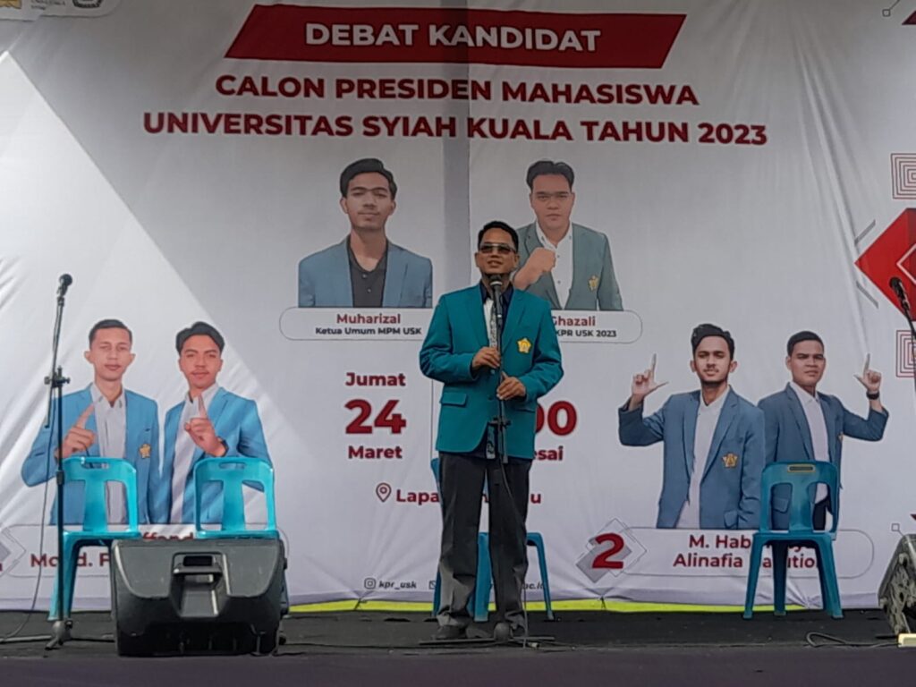 Komisi Pemilihan Raya (KPR) Universitas Syiah Kuala (USK) menyelenggarakan Debat Kandidat Calon Presiden Mahasiswa Badan Eksekutif Mahasiswa (BEM). Kegiatan ini diselenggarakan dalam rangka Pemilihan Raya (PEMIRA) USK tahun 2023, berlangsung di Lapangan Tugu Darussalam.