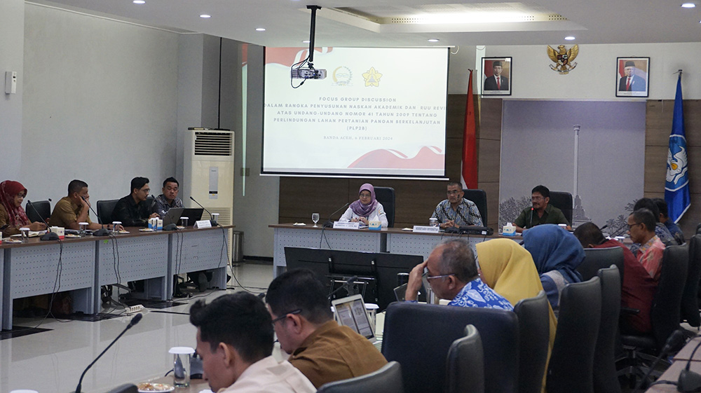 Dewan Perwakilan Daerah Republik Indonesia (DPD RI) melaksanakan Focus Group Discussion (FGD) bersama akademisi Universitas Syiah Kuala (USK), yang berlangsung di Balai Senat kampus tersebut, Selasa, 6 Februari 2024. FGD ini dalam rangka penyusunan naskah akademik dan RUU revisi atas UU No 41 tahun 2009 tentang Perlindungan Lahan Pertanian Pangan Berkelanjutan (PLP2B). “Terimakasih atas kegiatan