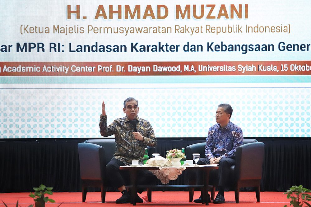 Universitas Syiah Kuala (USK) menjadi tuan rumah Kuliah Umum Empat Pilar Kebangsaan yang disampaikan oleh Ketua Majelis Permusyawaratan Rakyat Republik Indonesia (MPR RI), H. Ahmad Muzani, di Gedung AAC Dayan Dawood, Rabu (15/10/2025). Acara ini menyoroti tantangan karakter generasi muda di era digital, sekaligus menegaskan peran konstitusi dalam menjaga perdamaian global. Dalam sambutannya, Rektor USK,