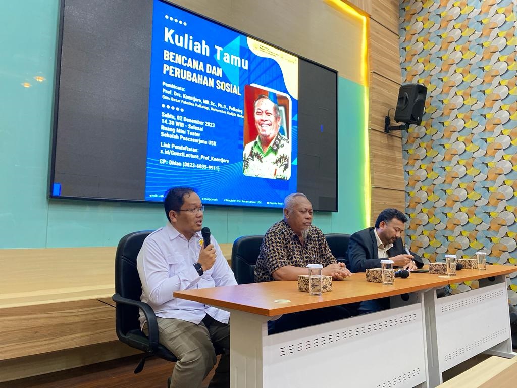 Magister Ilmu Kebencanaan Universitas Syiah Kuala (USK) bekerjasama dengan TDMRC USK, kembali laksanakan kuliah tamu kebencanaan dalam rangka memperingati ulang tahun Sekolah Pascasarjana USK ke-21, Sabtu,2 Desember 2023. Kali ini dosen tamu yang berhadir dan memberi kuliah tamu adalah guru besar dari Fakultas Psikologi Universitas Gadjah Mada, Prof. Drs. Koentjoro, MBSc., Ph.D., Psikolog. Kuliah tamu