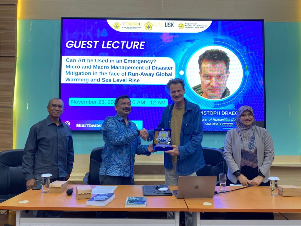 Program Studi Magister Ilmu Kebencanaan (Prodi MIK) Universitas Syiah Kuala (USK) menyelenggarakan kuliah tamu yang menghadirkan Senior Lectures in Humanities (Arts practise), Christoph Draeger dari Yale-NUS (National University of Singapore) di Ruang Mini Teater Pascasarjana. (Banda Aceh, 23 November 2023). Kegiatan ini dihadiri oleh peserta berbagai kalangan baik dari mahasiswa (S1, S2 dan S3), LSM,
