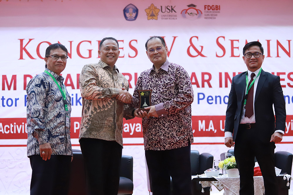 Forum Dewan Guru Besar Indonesia di USK: Bahas Arah Pendidikan menuju Indonesia Emas 2045 Puluhan profesor dari berbagai Perguruan Tinggi di Indonesia membahas permasalahan pendidikan Tanah Air. Pertemuan dan bahasan tersebut merupakan agenda dari Forum Dewan Guru Besar Indonesia (FDGBI) dimana Universitas Syiah Kuala (USK) bertindak sebagai tuan rumah. Di hari kedua, setelah pembukaan resmi