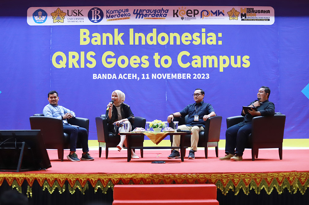 Bank Indonesia (BI) melaksanakan kegiatan QRIS Goes to Campus di Universitas Syiah Kuala (USK). Ratusan mahasiswa antusias mengikuti kegiatan yang berlangsung di AAC Dayan Dawood, kampus setempat, Sabtu, 11 November 2023. Deputi Kepala BI Perwakilan Provinsi Aceh, Prabu Dewanto mengatakan, kegiatan tersebut merupakan bagian dari program kerja BI, dalam rangka mensosialisasikan Qrish. “Untuk tahun ini,