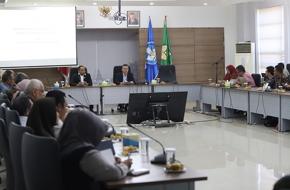 Universitas Syiah Kuala (USK) terus memantapkan diri sebagai institusi pendidikan yang informatif untuk publik. Hal ini ditunjukkan dengan konsolidasi bersama di Balai Senat USK, Selasa, 9 Oktober 2023. Ketua Komisi Informasi Aceh (KIA), Arman Fauzi dihadirkan untuk berbagi pengalaman kepada Satuan Pejabat Pengelola Informasi dan Dokumentasi (PPID) Pelaksana USK, bagaimana peran dan fungsi dijalankan agar