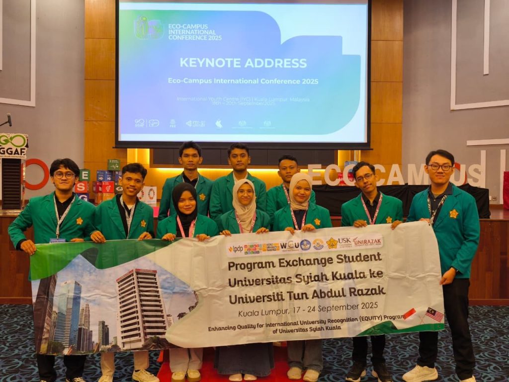 Sebanyak sepuluh mahasiswa Universitas Syiah Kuala (USK) mengikuti Program Student Exchange di Universiti Tun Abdul Razak (UniRazak), Malaysia, yang berlangsung pada 17–24 September 2025. Selain mengikuti kegiatan akademik dan budaya di kampus tersebut, para mahasiswa juga berkesempatan menjadi presenter dalam ajang Eco-Campus International Conference (ECIC) 2025. Peserta program ini terdiri atas Alya Irzan Ramadhani, Arie