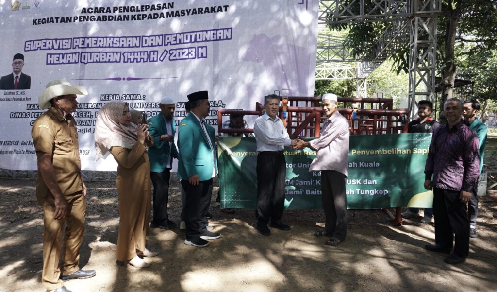 Universitas Syiah Kuala menerjunkan sebanyak 543 mahasiswa dan dosen dari Fakultas Kedokteran Hewan untuk melakukan Supervisi Pemeriksaan dan Pemotongan Hewan Qurban (SPPHQ) tahun 2023. Tim SPPHQ 2023 ini ini dilakukan penglepasan oleh Rektor USK Prof. Dr. Ir. Marwan bersamaan dengan penyerahan bantuan restrain box penyembelihan sapi kepada Badan Kemakmuran Masjid (BKM) Masjid Jamik Kopelma Darussalam