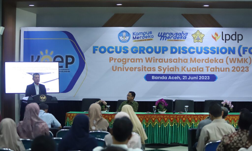 Universitas Syiah Kuala memberikan dukungan penuh agar para mahasiswanya bisa terlibat untuk mengikuti program Wirausaha Merdeka (WMK) dari Kementerian Pendidikan, Kebudayaan, Riset dan Teknologi. Salah satu bentuk komitmen tersebut adalah USK menggelar Focus Discussion Grup (FGD) agar program kewirausahaan tersebut bisa berjalan efektif di USK. Kegiatan FGD ini dibuka oleh Rektor USK Prof. Dr. Ir.