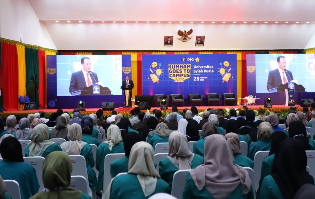 Kementerian Hukum dan Hak Asasi Manusia (Kemenkumham) mensosialisasikan Kitab Undang–Undang Hukum Pidana (KUHP) serta perubahan rancangan UUD Paten dan Desain Industri dalam kegiatan “Kumham Goes To Campus” di Universitas Syiah Kuala (USK), Banda Aceh, Selasa 28 Februari 2023. Wakil Menteri Hukum dan Hak Asasi Manusia (Wamenkumham), Prof Edward Omar Sharif Hiariej mengatakan, USK dan Aceh
