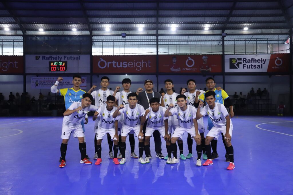 Tim futsal Aceh yang diperkuat 10 mahasiswa Universitas Syiah Kuala (USK) secara heroik mampu menumbangkan tuan rumah Pekan Olahraga Mahasiswa Nasional (POMNAS) XVII, Sumatra Barat. Pertandingan yang berlangsung di Rafhely Futsal itu berkesudahan dengan skor 2-1, Minggu 20 November 2022. Belum genap pertandingan berjalan 10 menit, Aceh tertinggal lebih dulu. Berawal dari kick in, bola