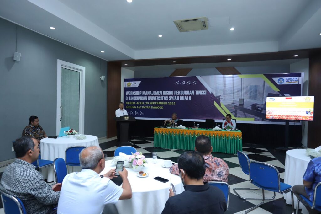 Universitas Syiah Kuala terus membenahi sistem manajemen risikonya agar lebih siap menghadapi statuta barunya yaitu Perguruan Tinggi Berbadan Hukum (PTN BH), yang dalam waktu dekat segera akan terwujud. Pernyataan ini disampaikan Rektor USK Prof. Dr. Ir. Marwan saat membuka Workshop Manajemen Risiko Perguruan Tinggi di Ruang VIP AAC Dayan Dawood. (Banda Aceh, 29 September 2022).