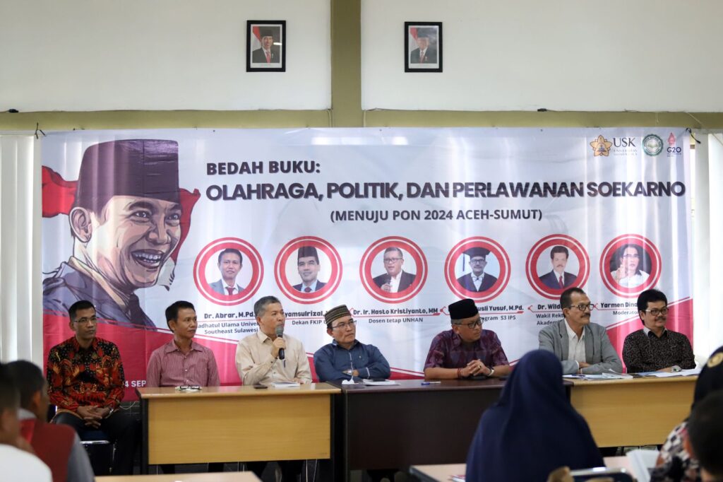 Buku dengan judul “Olahraga, Poltik dan Perlawanan Soekarno” resmi di-soft launching. Karya dari dua akademisi, Universitas Syiah Kuala (USK), Dr. Syamsulrizal, M.Kes dan Nahdhatul Ulama University, Dr. Abrar, MP.d ini dibedah di Sabang. (Sabtu, 24 Februari 2022) Kolaborasi dua penulis tersebut dipertemukan karena sama-sama menyelesaikan doktoral di Universitas Semarang (Unes). Syamsulrizal mengatakan, titik berangkat buku ini ditulis karena di Indonesia, belum
