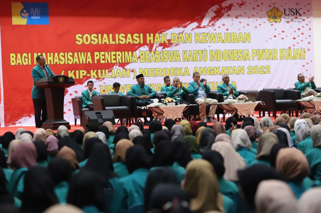 Universitas Syiah Kuala (USK) melaksanakan sosialisasi hak dan kewajiban bagi penerima beasiswa Kartu Indonesia Pintar Kuliah (KIP-Kuliah) Merdeka angkatan 2022. Kegiatan ini berlangsung di Gedung AAC Dayan Dawood. (Banda Aceh, Minggu 4 September 2022). Kepala Biro dan Alumni USK, Dr. Drh. Mustafa Sabri, M.P mengatakan, penerima beasiswa pada semester ganjil tahun 2022, keseluruhan berjumlah 8529