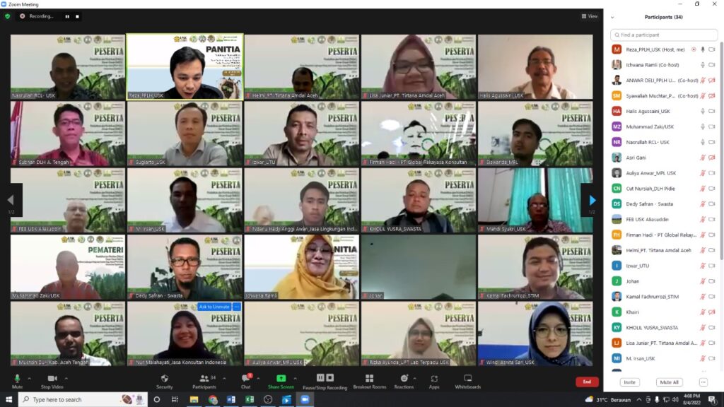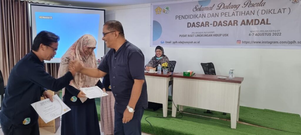 Pusat Riset Lingkungan Hidup (PRLH) Universitas Syiah Kuala bekerja sama dengan Kementerian Lingkungan Hidup dan Kehutanan Republik Indonesia dan INKALINDO, menggelar pendidikan dan pelatihan Dasar-Dasar Analisis Dampak Lingkungan Hidup (AMDAL). Diklat angkatan XXIV ini dimulai sejak tanggal 4 – 7 Agustus 2022 di USK. (Banda Aceh, 4 Agustus 2022).Kegiatan ini dibuka oleh Sekretaris Lembaga Penelitian