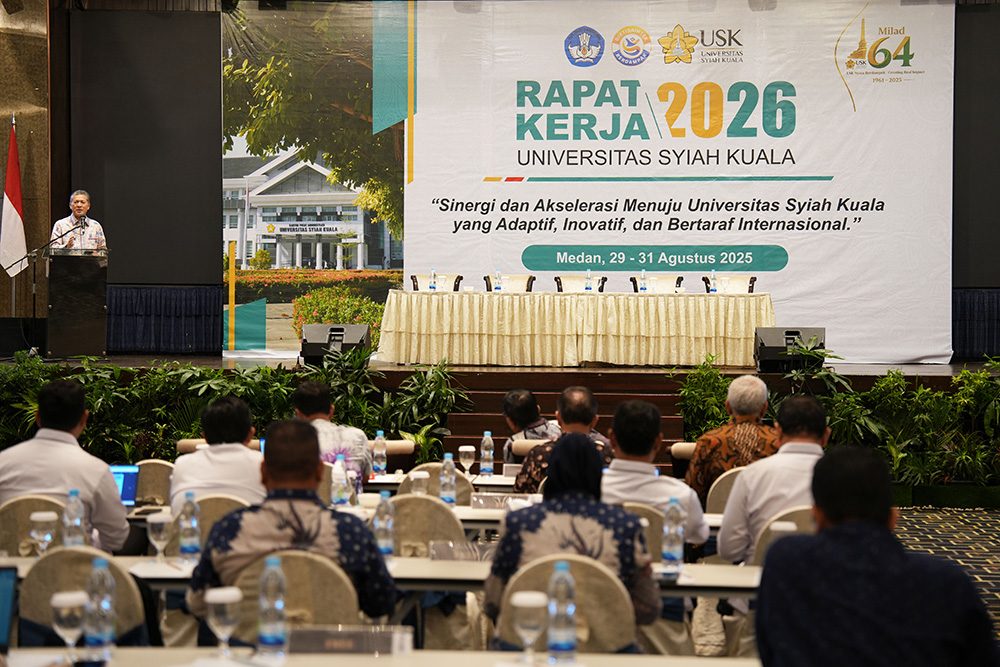 Universitas Syiah Kuala (USK) menyelenggarakan Rapat Kerja (Raker) untuk merumuskan program kerja tahun 2026. Acara yang berlangsung di Medan pada 29–31 Agustus 2025 ini mengusung tema: Sinergi dan Akselerasi Menuju Universitas Syiah Kuala yang Adaptif, Inovatif, dan Bertaraf Internasional. Ketua Panitia Raker, Dr. Munawar, S.Si, M.App.Stats menyampaikan, kegiatan ini merupakan tindak lanjut dari Musrenbang yang