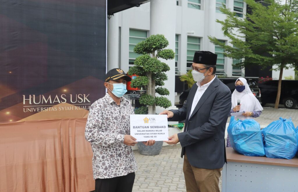 Universitas Syiah Kuala (USK) menyerahkan sebanyak 355 paket sembako, kepada delapan gampong (desa) binaan di seputaran kampus setempat. Pemberian sembako ini bertepatan dengan peringatan Milad ke-60 USK. Rektor USK, Prof. Dr. Ir. Samsul Rizal, M. Eng, IPU, ASEAN Eng, menyerahkan langsung paket sembako tersebut secara simbolis, yang diterima oleh perwakilan keuchik (kepala desa) setempat. Penyerahan