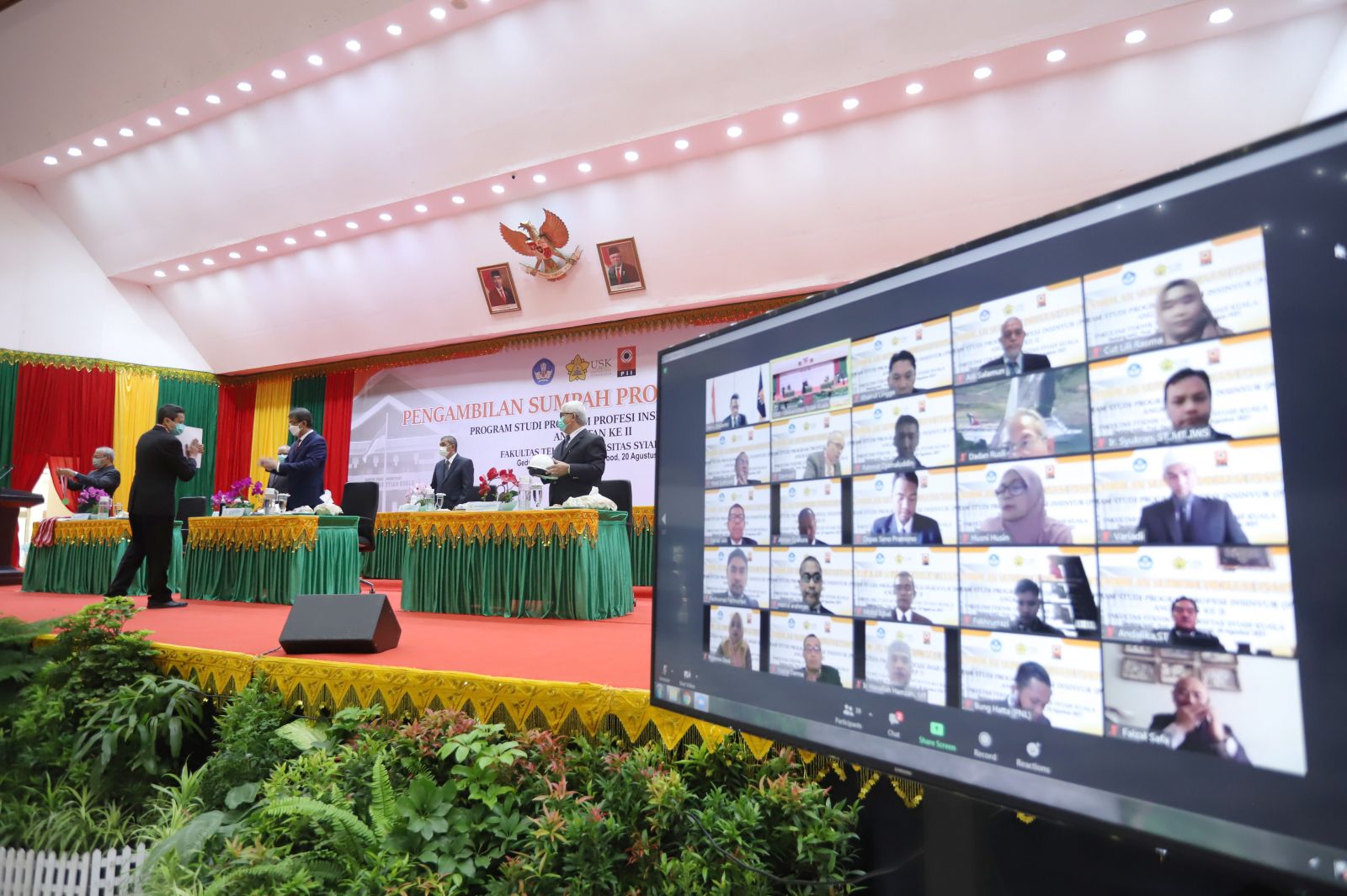 Rektor Universitas Syiah Kuala Prof. Dr. Ir. Samsul Rizal, M.Eng melantik tiga pejabat baru di lingkungan perguruan tinggi ini. Pelantikan yang menerapkan disiplin ketat protokol kesehatan tersebut berlangsung di Gedung AAC Dayan Dawood. (Banda Aceh, 23 Agustus 2021). Tiga pejabat baru yang dilantik tersebut adalah Dr. Darwanis, S.E.,M.Si.Ak sebagai Wakil Dekan I Fakultas Ekonomi dan