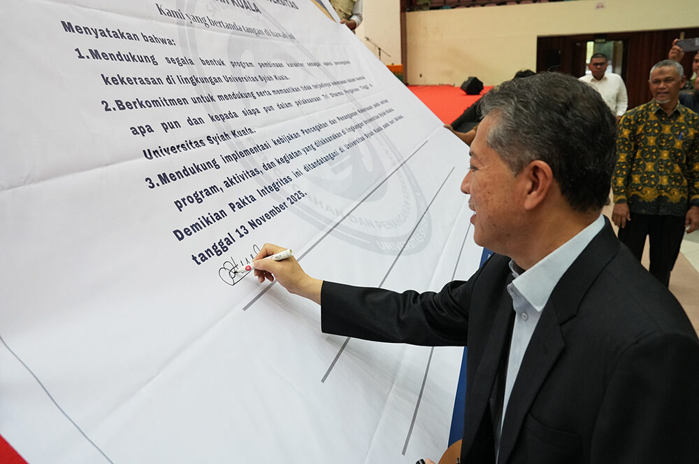 Universitas Syiah Kuala (USK) menggelar kegiatan Sosialisasi Pembinaan Karakter bertema “Membangun Kampus Aman dan Berkarakter; Sinergi Pencegahan dan Penanganan Kekerasan di Lingkungan USK” di Gedung AAC Dayan Dawood USK. ( Banda Aceh, 13 November 2025). Rektor USK Prof. Dr. Ir. Marwan dalam sambutannya menyampaikan bahwa upaya membangun kampus yang aman dan berkarakter tidak hanya diwujudkan