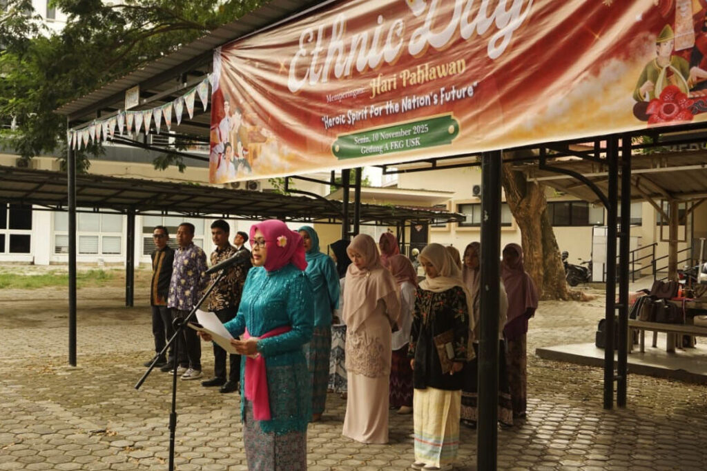Fakultas Kedokteran Gigi Universitas Syiah Kuala (FKG USK) kembali menggelar kegiatan Ethnic Day dalam rangka memperingati Hari Pahlawan pada Senin, 10 November 2025 di halaman FKG USK. (Banda Aceh, 10 November 2025). Ethnic Day merupakan bentuk penghargaan terhadap jasa para pahlawan sekaligus perayaan keberagaman budaya Nusantara di lingkungan FKG USK. Kegiatan ini diawali dengan upacara