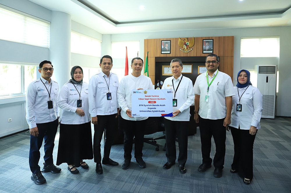 Dalam rangka menyambut Hari Raya Idul Adha 1446 H, Bank Tabungan Negara (BTN) Kantor Cabang Syariah (KCS) Banda Aceh menyerahkan satu ekor sapi qurban kepada Universitas Syiah Kuala (USK). Penyerahan hewan qurban dilakukan secara simbolis oleh Branch Manager BTN KCS Banda Aceh, Muhadi Eko Putra kepada Rektor USK Prof. Dr. Ir. Marwan di Ruang Kerja
