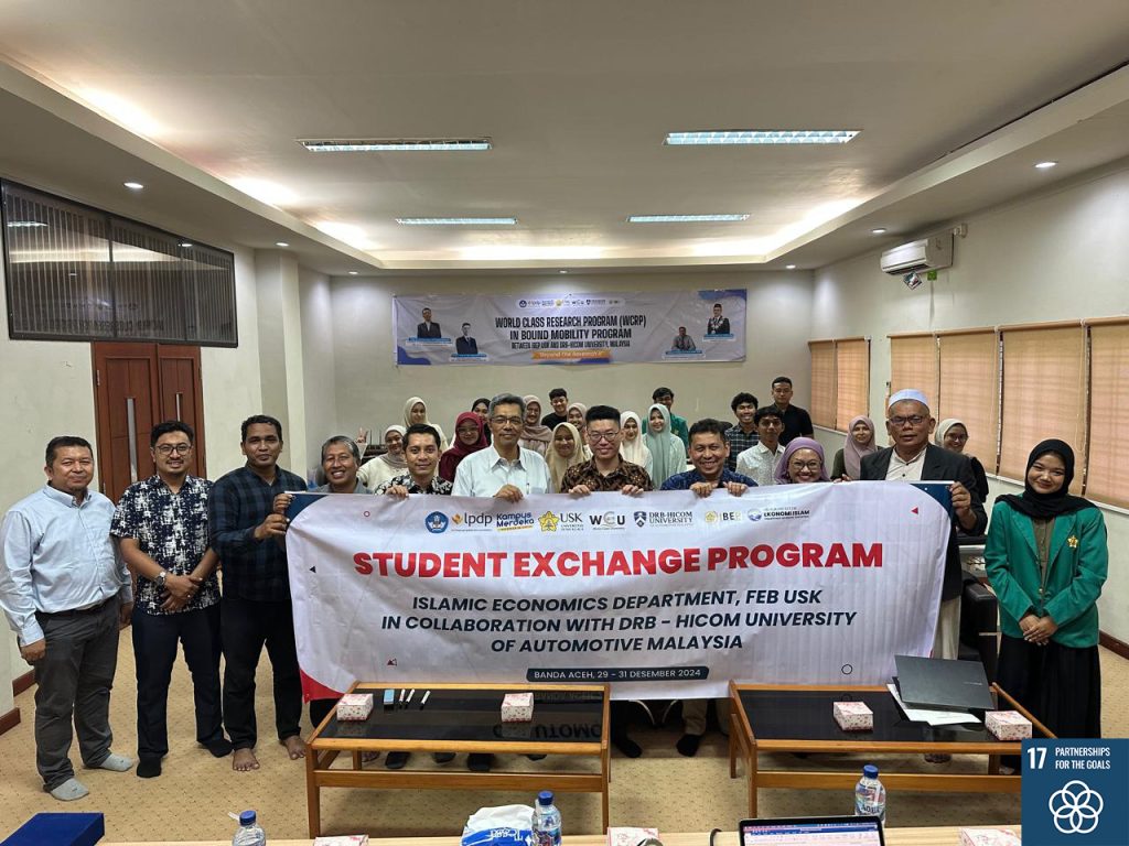 International Business and Economic Program (IBEP), Fakultas Ekonomi dan Bisnis Universitas Syiah Kuala (USK), menyelenggarakan kegiatan “International Collaboration in Introducing Islamic Economic Principles through Student Exchange Program” di Fakultas Ekonomi dan Bisnis USK. Kegiatan ini merupakan balasan Kegiatan Student Exchange yang dilakukan oleh Program Studi Ekonomi Islam ke DRB -HICOM University Malaysia sebelumnya. Kegiatan ini