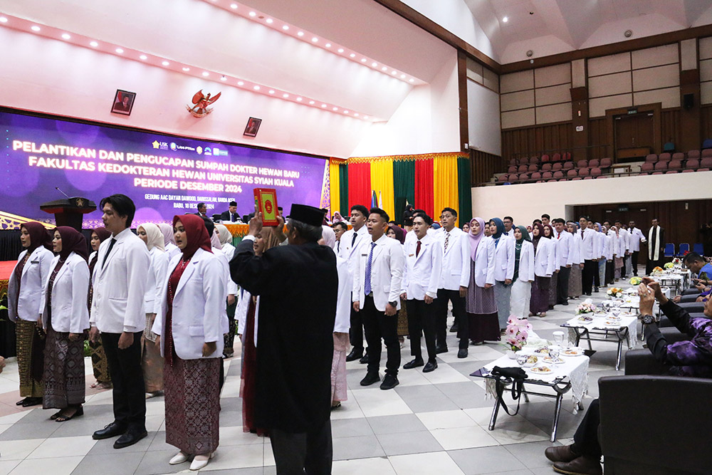 Program studi Pendidikan Profesi Kedokteran Hewan pada Fakultas Kedokteran Hewan Universitas Syiah Kuala meluluskan sebanyak 96 Dokter Hewan Baru. Seluruh lulusan baru tersebut dilantik dan diambil sumpahnya oleh Dekan Fakultas Kedokteran Hewan drh. Teuku Reza Ferasyi, M.Sc. PhD di Gedung AAC Dayan Dawood. (Banda Aceh, 18 Desember 2024). Reza Ferasyi dalam sambutannya mengatakan, dari 96