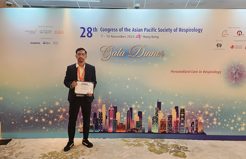 dr. Fadhlul Huda Suardi, mahasiswa Program Pendidikan Dokter Spesialis (PPDS) di Departemen Pulmonologi dan Kedokteran Respirasi FK USK – RSUD dr. Zainoel Abidin Banda Aceh berhasil mendapatkan penghargaan internasional. Perhargaan tersebut diraih dari bidang Pulmonologi dan Kedokteran Respirasi, yaitu Asian Pacific Society of Respirology sebagai penerima penghargaan di bidang Clean Air Congress Abstract Award tahun