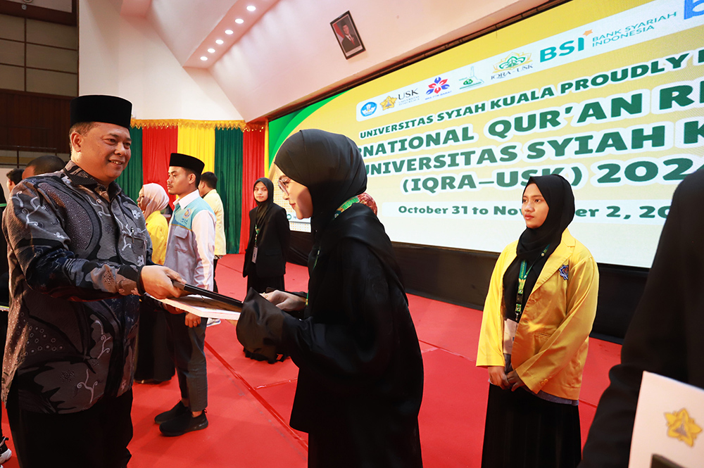 Kafilah Universitas Syiah Kuala berhasil meraih juara umum pada International Quran Recitation Award (IQRA-USK) yang diselenggarakan sejak tanggal 31 Oktober – 3 November 2024 di USK. Hal ini berdasarkan Keputusan Dewan Hakim yang disampaikan pada closing ceremony MTQ Internasional ini pada Sabtu malam, di Gedung AAC Dayan Dawood. (Banda Aceh, 3 November 2024). IQRA-USK adalah MTQ Internasional