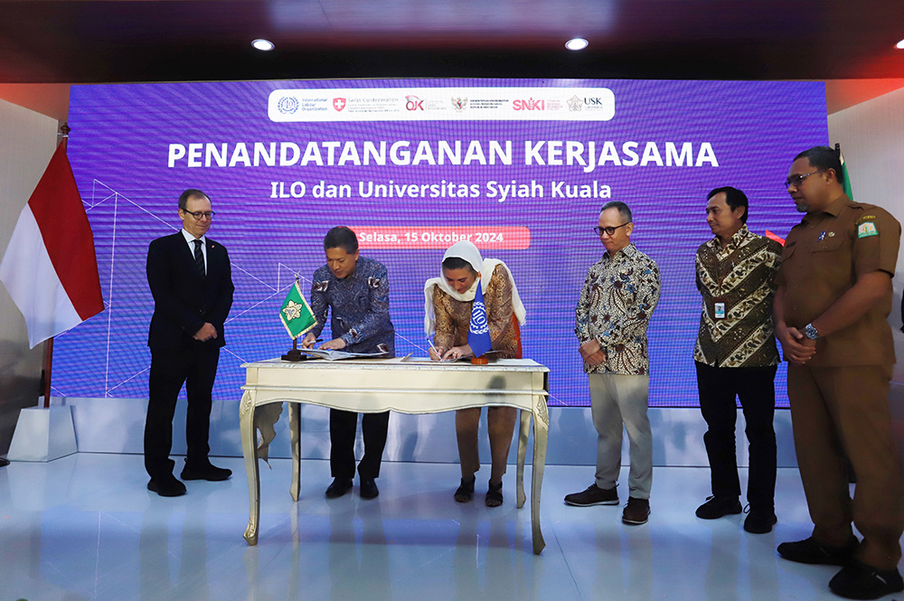 Universitas Syiah Kuala dan Organisasi Buruh Internasional atau International Labour Organization (ILO) sepakat untuk saling kolaborasi demi memperkuat ekosistem nilam Aceh. Komitmen ini ditandai dengan penandatanganan MoU oleh Rektor USK Prof.Dr. Ir. Marwan dengan Direktur Kantor ILO Indonesia dan Timor Leste Simrin C. Singh di Ruang VIP Gedung AAC Dayan Dawood. (Banda Aceh, 15 Oktober