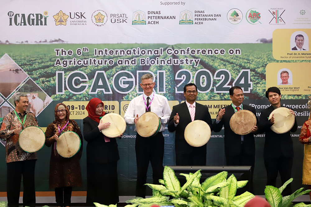 Universitas Syiah Kuala melalui Fakultas Pertanian kembali International Conference on Agriculture and Bioindustry (ICAGRI), yang salah satu isu yang dibahas adalah terkait strategi ketahanan pangan. Konferensi Internasional ini dilaksanakan mulai tanggal 9 – 10 Oktober 2024 di Hotel Hermes Palace. (Banda Aceh, 9 Oktober 2024). Ketua Panitia Prof. Dr. Ir Eka Meutia Sari, M.Sc mengatakan,