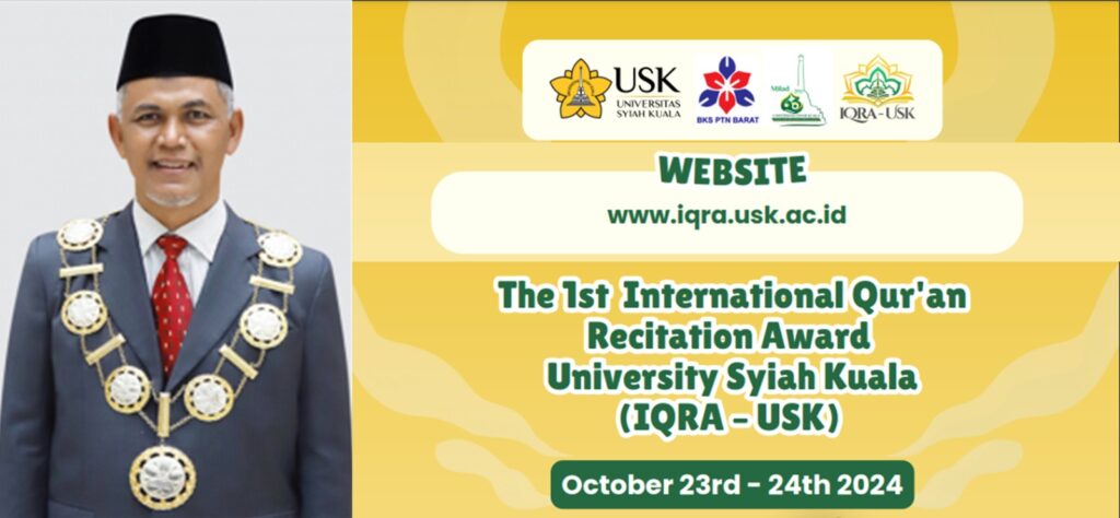 Universitas Syiah Kuala (USK) merencanakan penyelenggaraan Lomba Tilawatil Qur’an Internasional (International Qur’an Recitation Award – IQRA-USK) pertama. Kegiatan ini merupakan sebuah kompetisi internasional yang berfokus pada seni membaca dan menghafal Al-Qur’an yang akan dilaksanakan pada tanggal 23 hingga 25 Oktober 2024 di Darussalam, Banda Aceh. Acara bersejarah ini menandai tonggak penting bagi USK yang terus