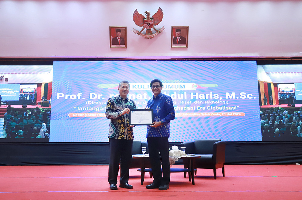 Dirjen Diktiristek, Prof. Dr. rer. nat. Abdul Haris, M.Sc berbicara tentang Tantangan Mahasiswa dalam Menghadapi Era Globalisasi di Universitas Syiah Kuala (USK). Kuliah umum ini berlangsung di AAC Dayan Dawood, Selasa, 28 Mei 2024. Ia mengungkapkan, saat ini ada sejumlah tantangan, seperti perubahan yang sangat cepat dan tidak terkontrol (volatility). Masa depan sukar diprediksi dan