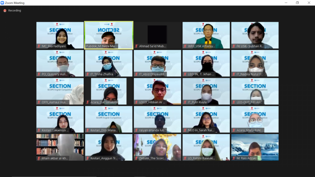 Center for Indonesian Medical Students’ Activities (CIMSA) Fakultas Kedokteran (FK) Universitas Syiah Kuala (USK), kembali mengadakan kompetisi Bahasa Inggris, yaitu SECTION (SCOPE English Competition). Kompetisi ini merupakan salah satu kegiatan besar dari divisi SCOPE (Standing Committee on Professional Exchange) CIMSA FK Unsyiah, yang berlangsung pada tanggal 27-28 Maret 2021 melalui Zoom.