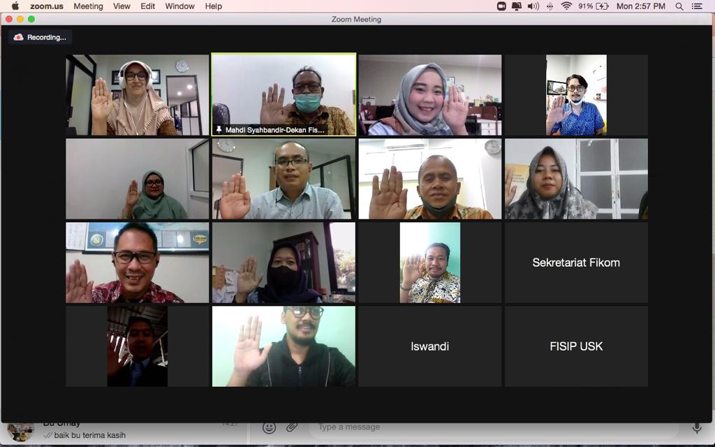 Guna mendukung kurikulum Merdeka Belajar – Kampus Merdeka (MBKM), Fakultas Ilmu Sosial dan Ilmu Politik Universitas Syiah Kuala (FISIP-USK) sepakat untuk berkolaborasi dengan Fakultas Ilmu Komunikasi Universitas Budi Luhur (FIKOM-UBL). Kesepakatan tersebut ditandai dengan penandatanganan perjanjian kerja sama (PKS) secara virtual, Senin (25/10/2021).