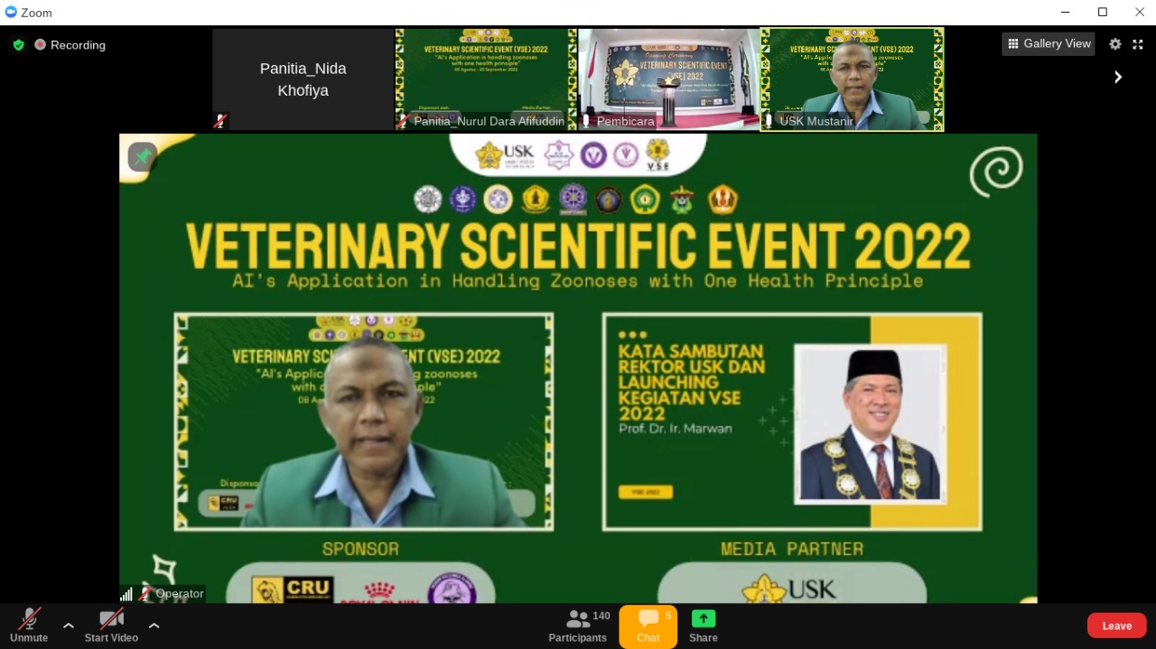 Fakultas Kedokteran Hewan Universitas Syiah Kuala menyelenggarakan Opening Ceremony Veterinary Scientific Event 2022 secara hybrid melalui zoom meeting dan langsung di Aula lantai 3 gedung FKH USK. (Banda Aceh, 8 Agustus 2022).
