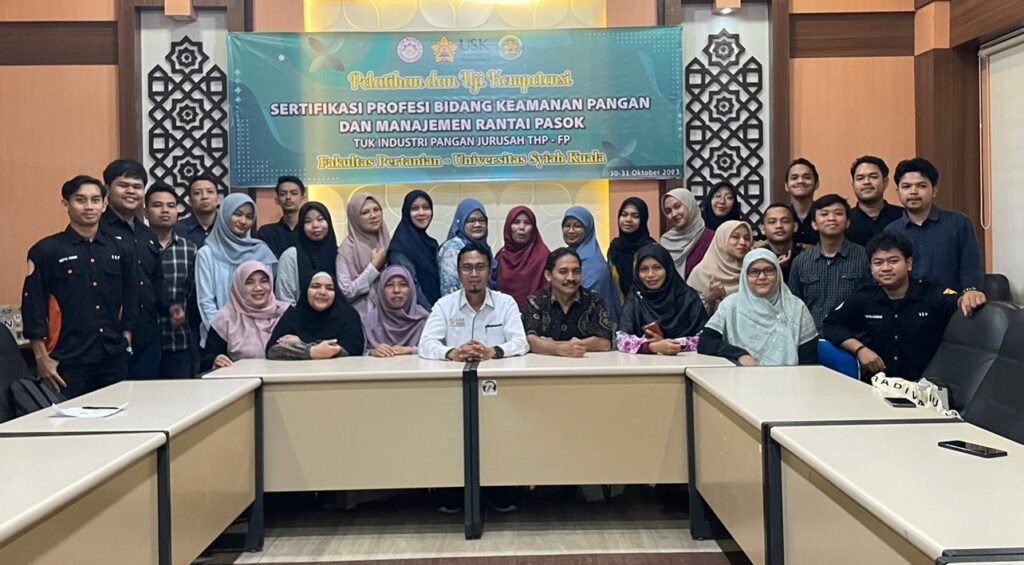Pelatihan dilakukan pada 6 November 2023 dan ujian sertifikasi kompetensi dilakukan pada 13 November 2023. Kegiatan ini hasil kerjasama dengan TUK Industri Pangan Jurusan Teknologi Hasil Pertanian – FP USK.