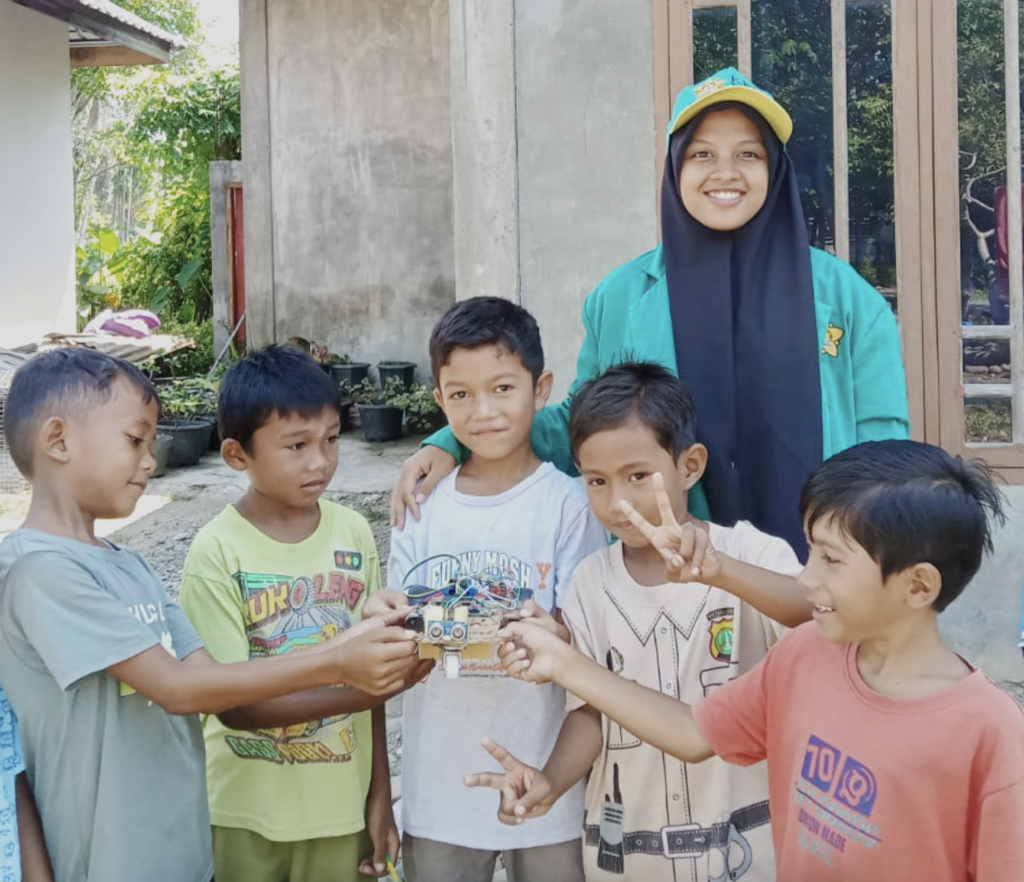 Mahasiswa KKN USK Motivasi Anak Warga dengan Prototipe Robot Pengepel
