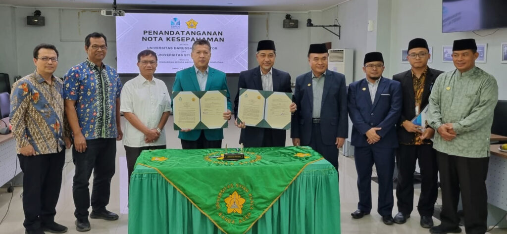 Universitas Syiah Kuala (USK) menjalin kerjasama dengan Universitas Darussalam (UNIDA) Gontor. MoU ini terjalin saat Rektor USK, Prof. Dr. Ir. Marwan menerima kedatangan Rektor UNIDA Gontor, Prof. Dr. K.H. Hamid Fahmy Zarkasyi, M.A.Ed.,M.Phil di Balai Senat USK, Sabtu, 22 Juni 2024.