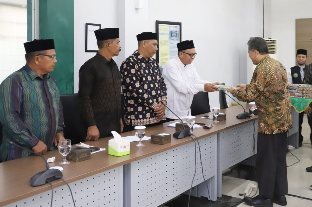 Rektor Universitas Syiah Kuala Prof. Dr. Ir. Marwan melepas sebanyak 41 orang jamaah calon haji yang merupakan dosen dan tenaga kependidikan pada lingkungan USK di Balai Senat USK. (Banda Aceh, 22 Mei 2022).