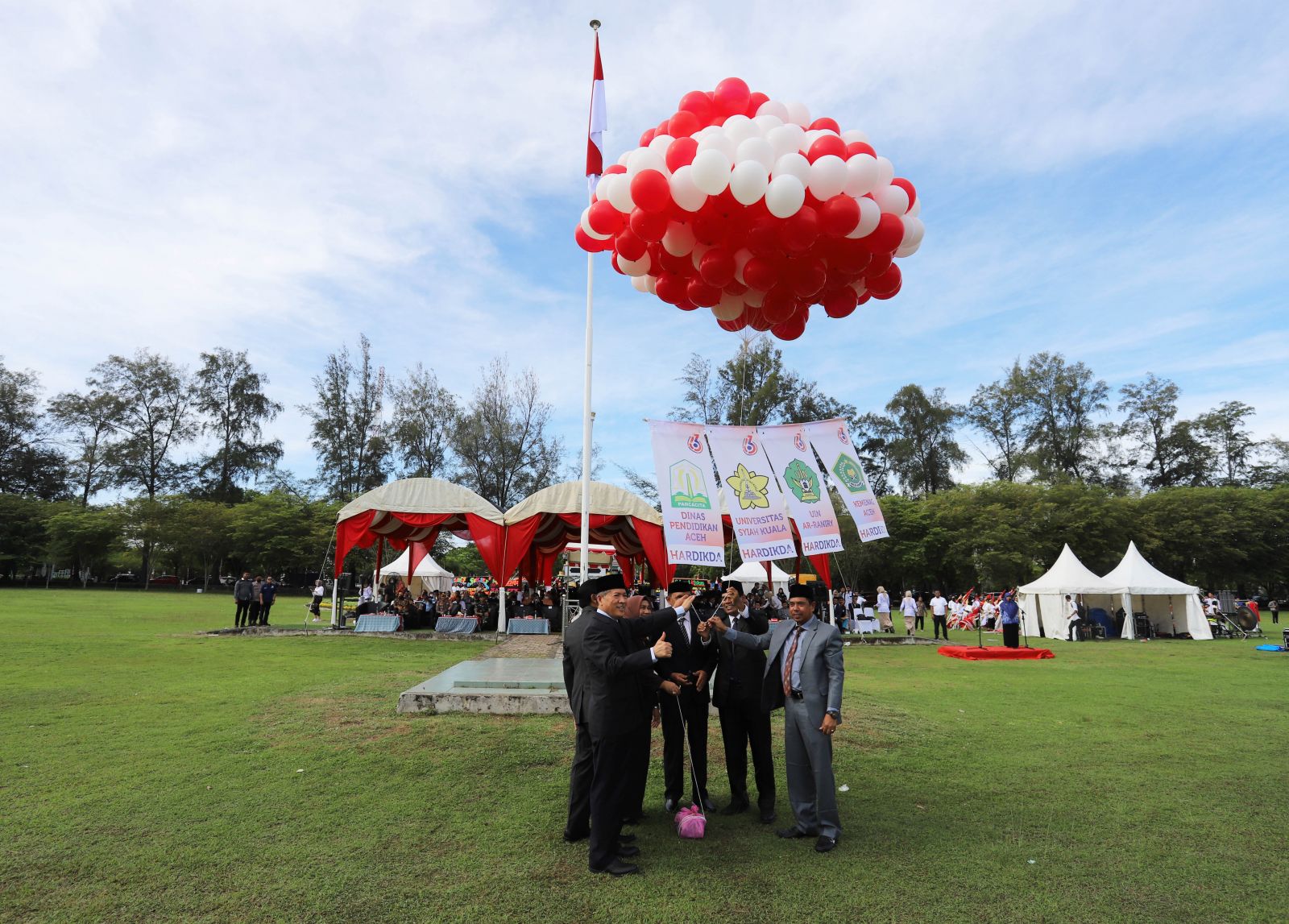 Peringatan Hardikda ke 63 berlangsung hikmat. Selain Rektor USK, turut hadir Rektor UIN Ar-raniry, Prof. Dr. H. Mujiburrahman, M.Ag, unsur Forkopimda dan sejumlah tamu undangan. Tugu Darussalam merupakan tonggak untuk pendidikan Aceh.