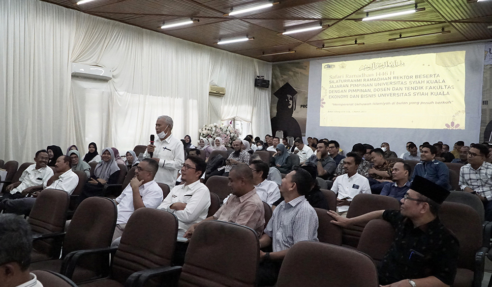 Rektor Universitas Syiah Kuala (USK), Prof. Dr. Ir. Marwan, melanjutkan rangkaian Safari Ramadan 2025 dengan mengunjungi Fakultas Ekonomi dan Bisnis (FEB) USK di Ruang Balai Sidang FEB USK. (Banda Aceh, 5 Maret 2025)