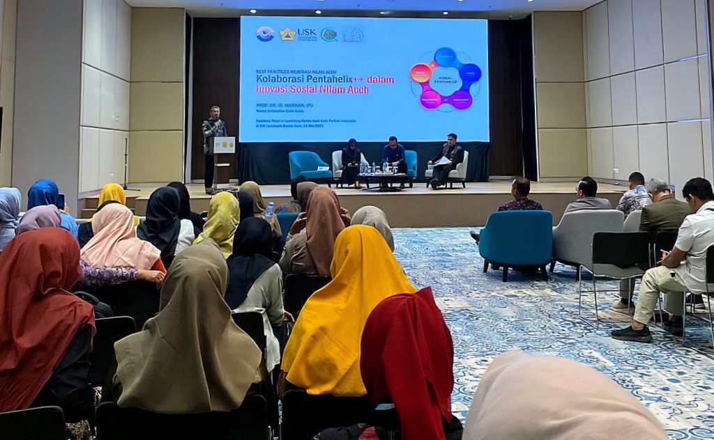 Rektor Universitas Syiah Kuala (USK), Prof. Marwan, mempresentasikan Social Innovation (Inovasi Sosial) yang dilakukan USK dalam 10 tahun terakhir untuk komoditas unggulan nasional Nilam Aceh (Jum’at, 23 Mei 2025). Presentasi hulu-hilir nilam dalam Seminar dan Loka Karya (Semiloka) Nasional tersebut menjabarkan bagaimana inovasi sosial dengan pendekatan inklusif dan berbasis iptek dilakukan oleh USK. Inovasi sosial tersebut juga dilakukan secara sinergi penta helix plus dengan Perguruan Tinggi, Pemerintah, Dunia Usaha, Masyarakat dan Media, plus lembaga keuangan, serta manajemen logistik dan transportasi.