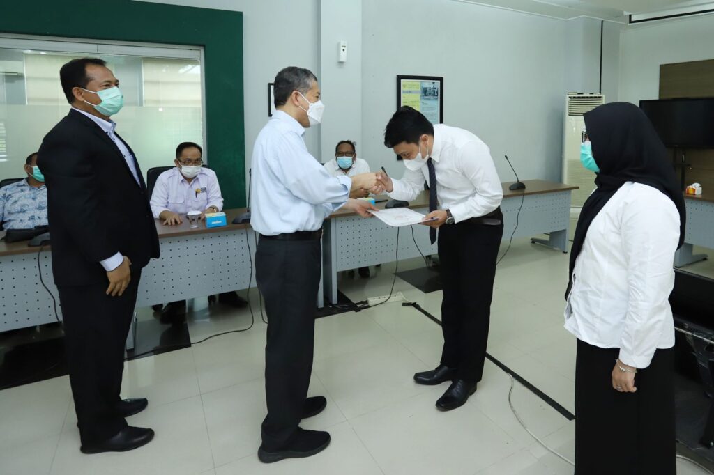 Rektor Universitas Syiah Kuala Prof. Dr. Ir. Marwan menyerahkan sebanyak 22 SK kepada Calon Pegawai Negeri Sipil (CPNS) formasi tahun 2021 di lingkungan kampus ini. Kegiatan yang turut dihadiri Dekan, Wakil Dekan dan para Kepala Biro di lingkungan USK tersebut dilaksanakan di Balai Senat USK. (Banda Aceh, 9 Mei 2022).