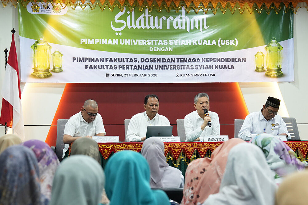 Mengawali rangkaian Safari Ramadan 1447 Hijriah, Rektor Universitas Syiah Kuala (USK), Prof. Ir. Marwan, melakukan kunjungan perdana ke Fakultas Pertanian (FP) di Aula MPR FP USK, Senin (23/2/2026). Pertemuan ini terasa berbeda karena menjadi momen pamitan bagi Prof. Marwan yang akan segera mengakhiri masa baktinya sebagai pimpinan universitas.