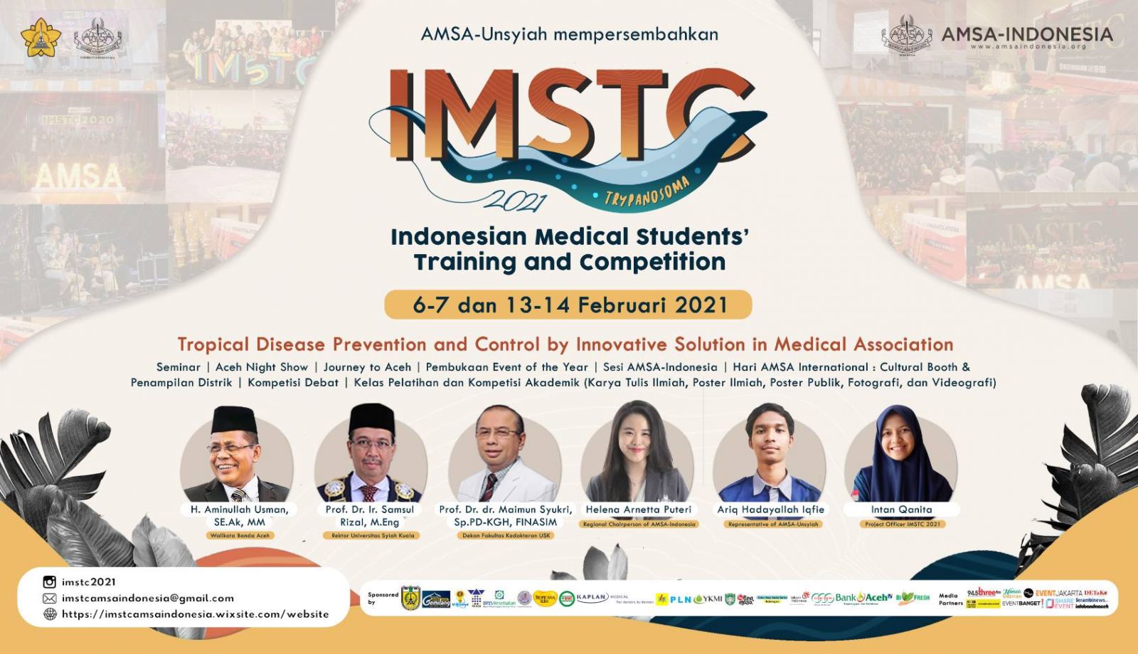 Tim AMSA Universitas Syiah Kuala yang diwakili oleh Muhammad Shadiqul Zikiri, Intan Qanita, dan Sherina Arfi yang merupakan mahasiswa Kedokteran USK berhasil menjadi juara 3 videografi pada ajang Indonesian Medical Student’s Training and Competition (IMSTC). (Banda Aceh, 19 Februari 2021).