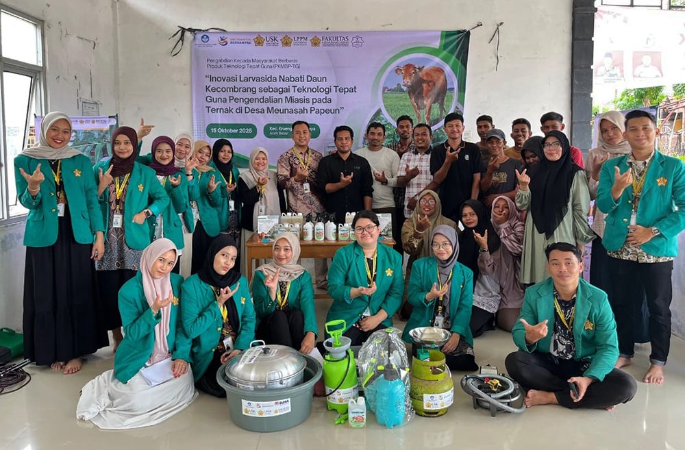 Kegiatan itu adalah pelatihan pembuatan larvasida nabati (pembunuh larva serangga berbahan tumbuhan) berbasis daun kecombrang untuk para peternak di Desa Lamreung, Meunasah Papeun, Kecamatan Krueng Barona Jaya. (Aceh Besar, 15 Oktober 2025).