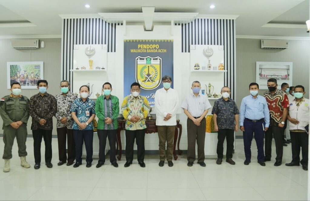 Tim Satuan Tugas Covid-19 Universitas Syiah Kuala melakukan kunjungan ke Pendopo Walikota Banda Aceh. Tim Satgas Covid-19 USK ini dipimpin oleh Rektor USK Prof. Dr. Ir. Samsul Rizal,M.Eng dan disambut oleh Walikota Banda Aceh Aminullah Usman di ruang kerjanya. (Banda Aceh, 7 Januari 2021).
